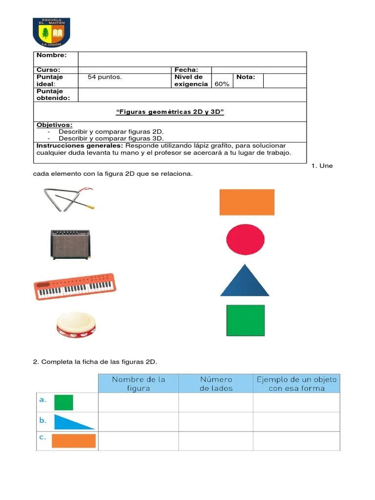 B) con una figura de 5 …. 2 worksheets of matching the shape to its name. Completa, con ayuda de tu familia, el siguiente cuadro: Por ello, interesa que exploren los objetos del entorno y los relacionen con figuras 2d y 3d 2d ( 2 dimensiones) son figuras geomtricas, cuya caracterstica es ser plana, como por ejemplo: Completa, con ayuda de tu familia, el siguiente cuadro: